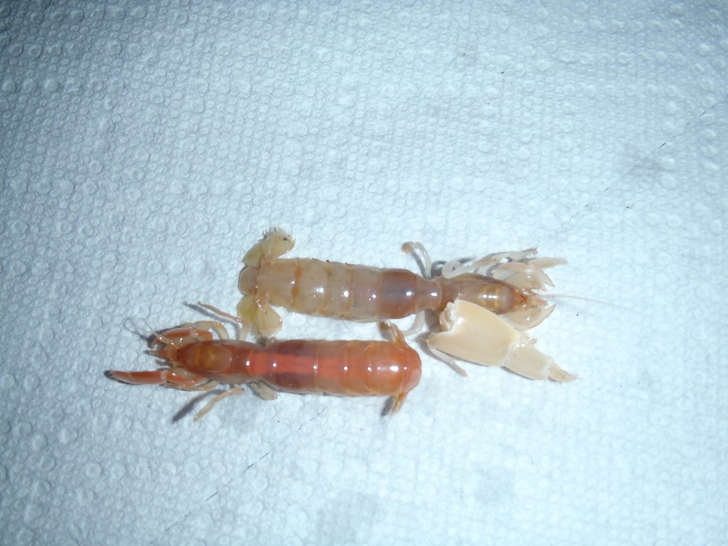Ghost Shrimp can be found most often on the sandy beaches of western British Columbia and the east coast of Vancouver Island all the way down to California. The best method is to pump them out of the sand with a slurp pump or Ghost Shrimp pump when the sand is saturated with water. This allows the shrimp to be easily drawn out of the sand with the water and sand when you pump for them. Ghost shrimp burrows can be full of mazes and easily three feet deep or deeper. My favourite time is just when the water comes off the burrows. The sand and burrows are soft, and of course, with the water being drawn out, sand and shrimp will flow with it. When the Ghost Shrimp pump is placed in the center of the burrow and then pushed in while the handle is being drawn up, it creates a suction that will draw sand, water, and shrimp. Sometimes, two or three attempts are required. I have a bait box tied to my waist with a paper towel soaked in salt water that offers quick storage while I pump more out of the sand. Remember to peruse the burrows that you dug up as the Ghost Shrimp will come out of their collapsed burrows, or ones that are missed in the discarded sand piles will climb out. Of all the shrimp I find, I don’t keep males; those that are too small and females with eggs are put back under cover so the birds will not eat them. This allows the shrimp beds to continue to flourish. Once I collect what I need, I rinse all the sand off them and store them in a clean plastic bucket on a bed of paper towels soaked in seawater with another paper towel over them – the bucket is then stored at the bottom of the fridge.