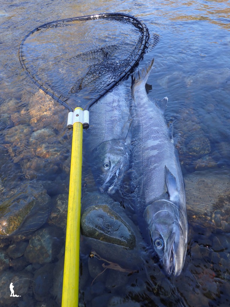 I was targeting Spring ( Chinook ), Chum salmon and Pink salmon. I realized that these salmon favour different types of water flow. I had only a T11 sinking tip that sinks 7-8 inches a second. With only one kind of sink tip, this had narrowed my ability to cover successfully different parts of the river flow.