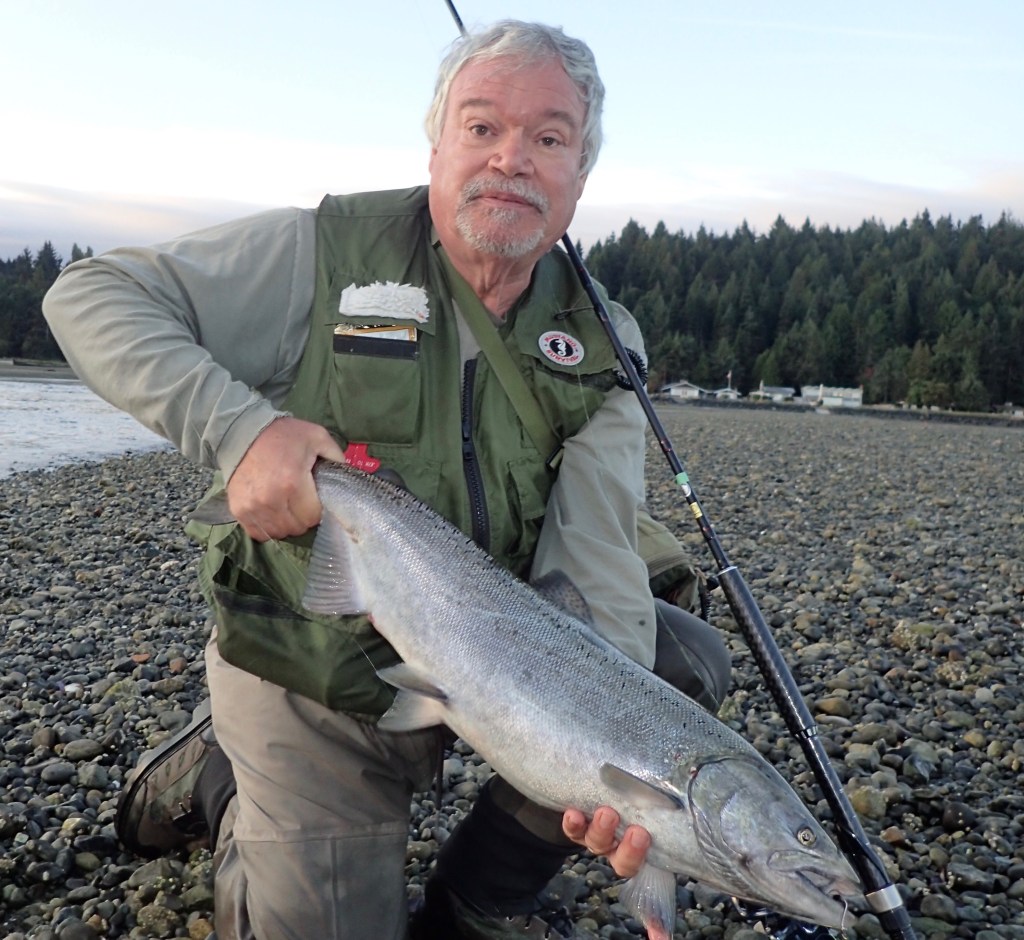 Gil’s Spring salmon caught with a 3/8 ounce Pink Holographic ZzingerRandy Kirkpatrick with a Chinook salmon taken by a Olympic Tackle Green Squid Spinner