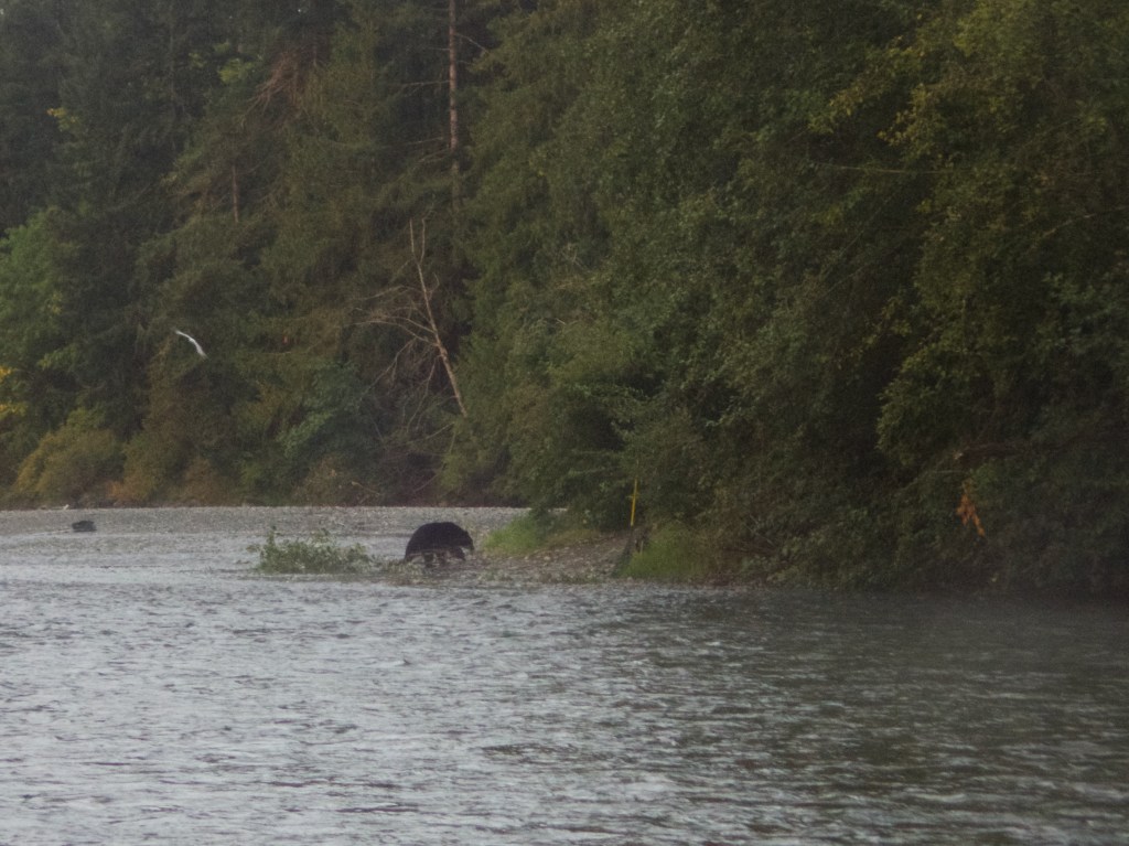 When the salmon did go upriver it was in very short spurts and it was all in the timing. Added to the challenge was a black bear that frequently tried to steal salmon being kept at the shore.