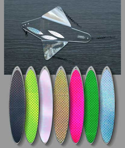 I have had success with the Wigglefin Swarm Switchblade flasher system. Each set has nine reflective surfaces within a combined assembled shorter length than its competitors have. The benefit of a shorter system is fewer issues of tangles when lowering the downrigger, less drag and a more dense vibration and flash. The flashing blades are individual, so changing individual blades to other colour options is easier and less time-consuming.