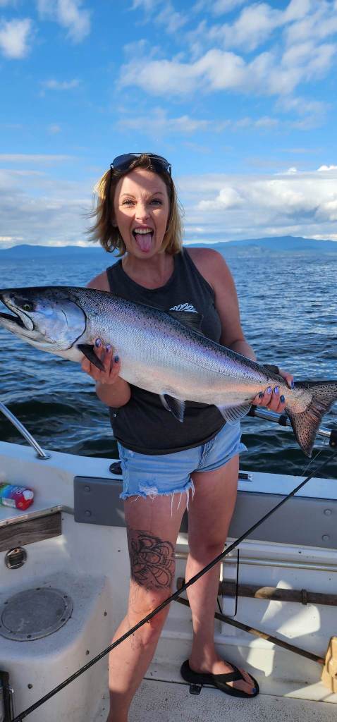 Shannon Mcdougall, Bigfish Charter Tyler Kaye owner and guide, using Swarm flashers at 227 feet deep.