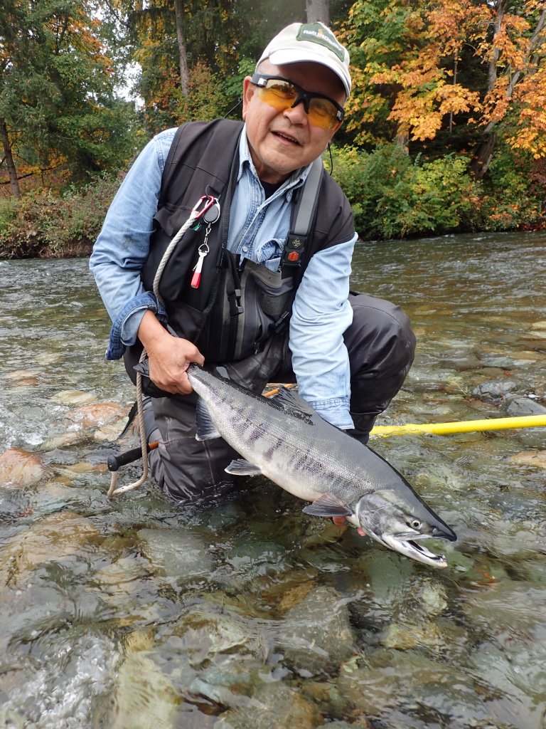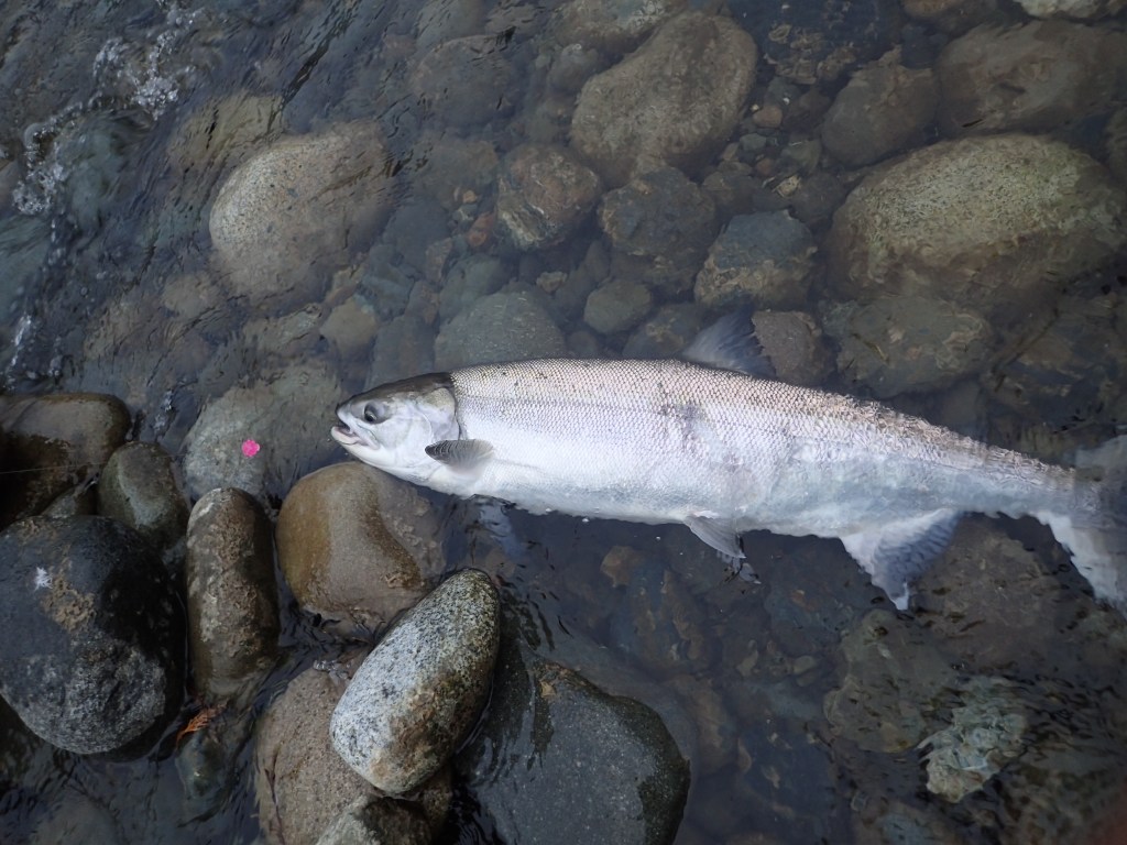 In a river flowing on Vancouver Island’s East Coast, I targeted Silverbrite Chum salmon. Silverbrite refers to chum salmon that have entered their spawning waters but have yet to turn into their calico colour.