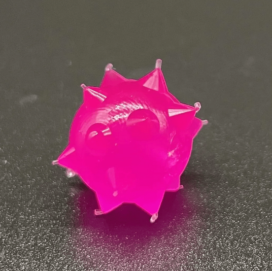There are two noteworthy benefits to this specific shape. It provides a unique rebound from river structures, and the spikes create a visually striking presentation for salmon and steelhead. The bait’s overall profile is distinctive from other beads due to its shape.