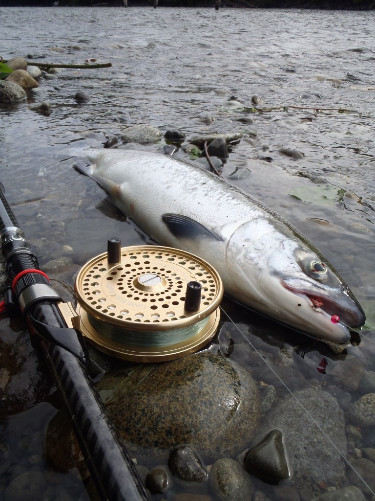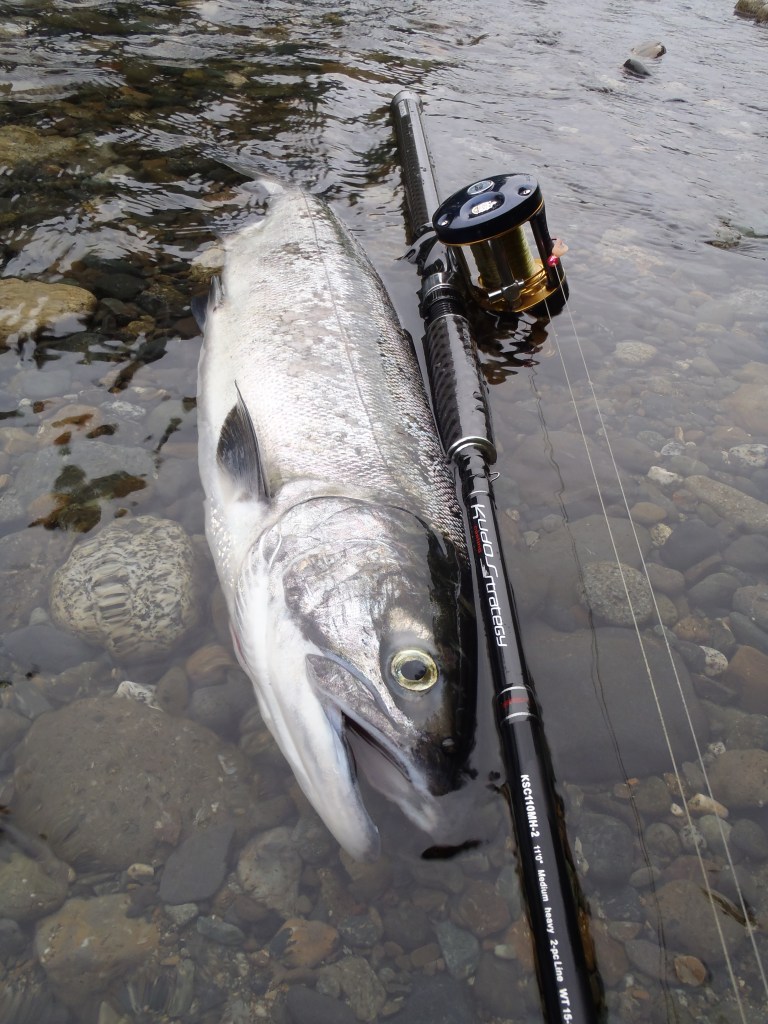 The setup I begin with consists of a level wind or centrepin reel paired with a line-weight rod ranging from 15 to 25 pounds. While some prefer lighter rods, this can often result in a lengthier struggle. Since the current limit is one on the Somass River, it is advisable to prioritize safe catch-and-release practices. Additionally, utilizing a soft, flat mesh net will enhance the fish’s chances of survival by preventing the removal of scales and mucous or causing abrasions.