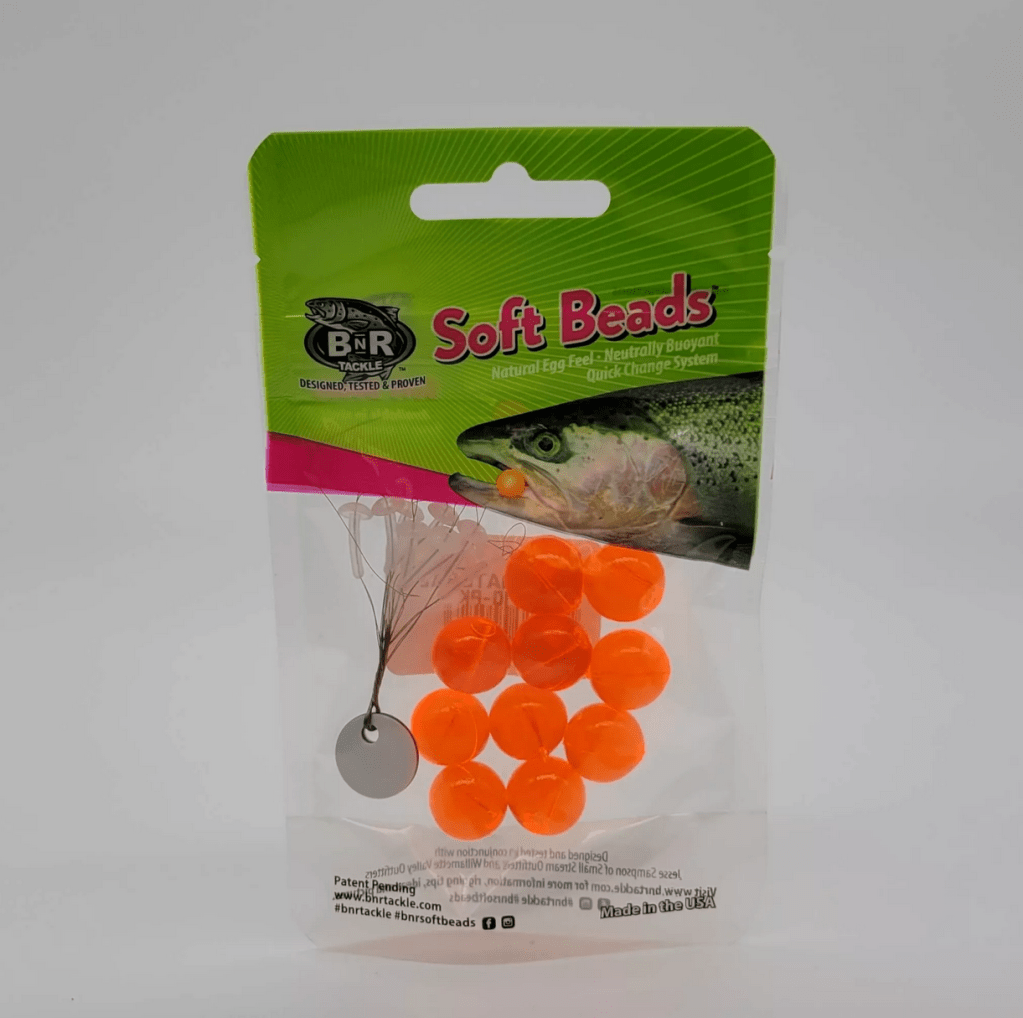 Hard beads tend to sink quickly in the water column, and anglers believe they stay in the lower strike zone quicker. The soft beads are a little more buoyant, sinking more slowly, and that’s perfect for the angler short floating in the mid or 3/4 depth-water column. They also provide a natural egg-like texture that may make Salmon or steelhead hold on to them longer.