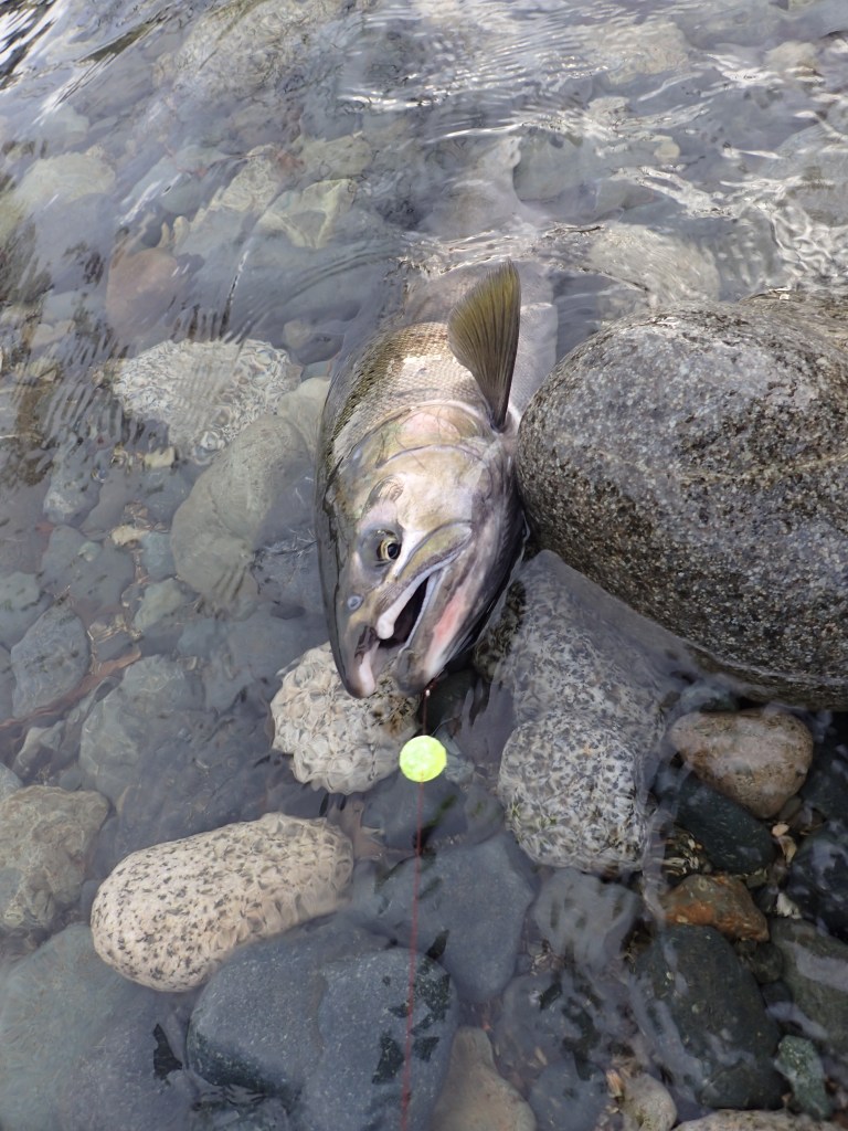 Floating beads near the bottom, the angler’s weight tapping along the bottom of the river, also known as bobber doggin, or in the mid to three-quarter depth of the water column (Short floating ), produce positive results. Each Salmon species favours different structures and river flows, either hugging the bottom of the river or remaining suspended.