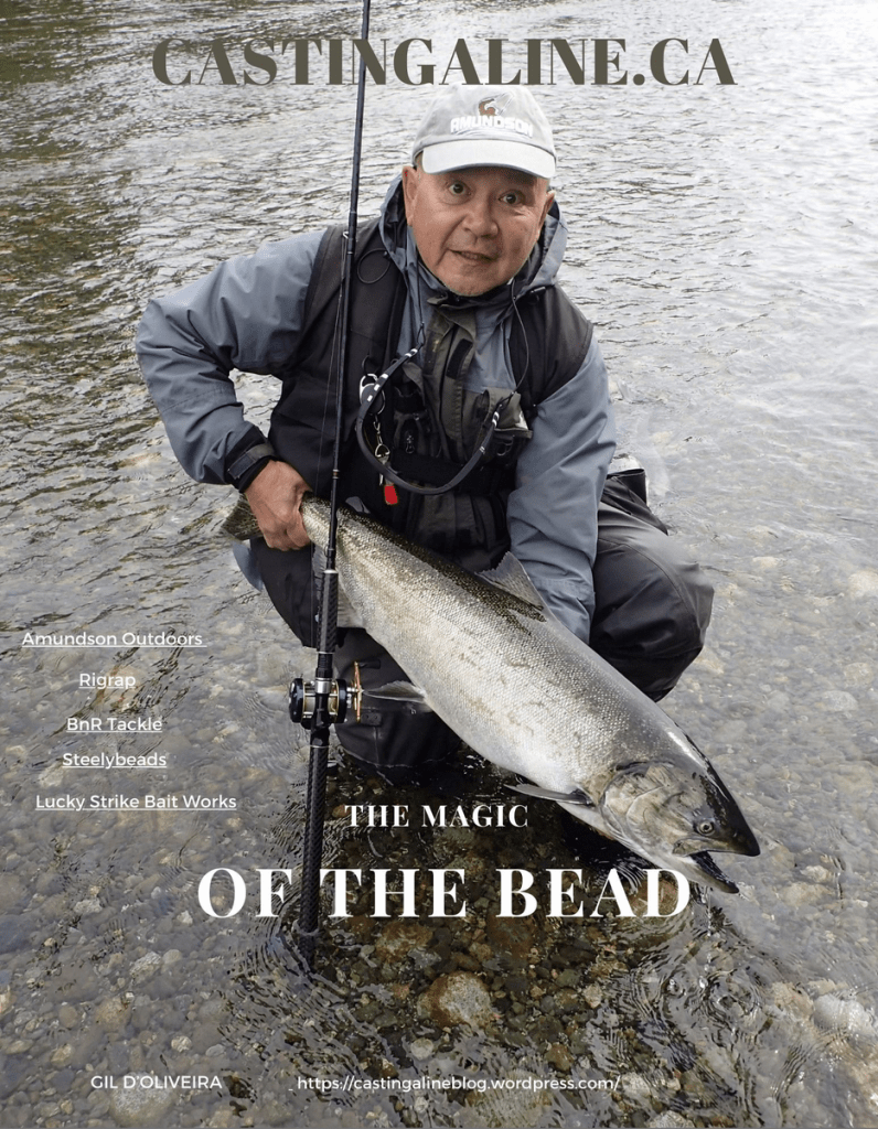 If heavy rain results in high river flow, anglers should choose a more intense presentation, a larger bead, and a brighter colour for visibility in silted water. Also, the flow of the river you’re fishing in will play a role in determining if the bite is good. My experience with beads is that fast and slow water creates a slipstream for the steelheads or Salmon to rest, often resulting in successful hook-ups.