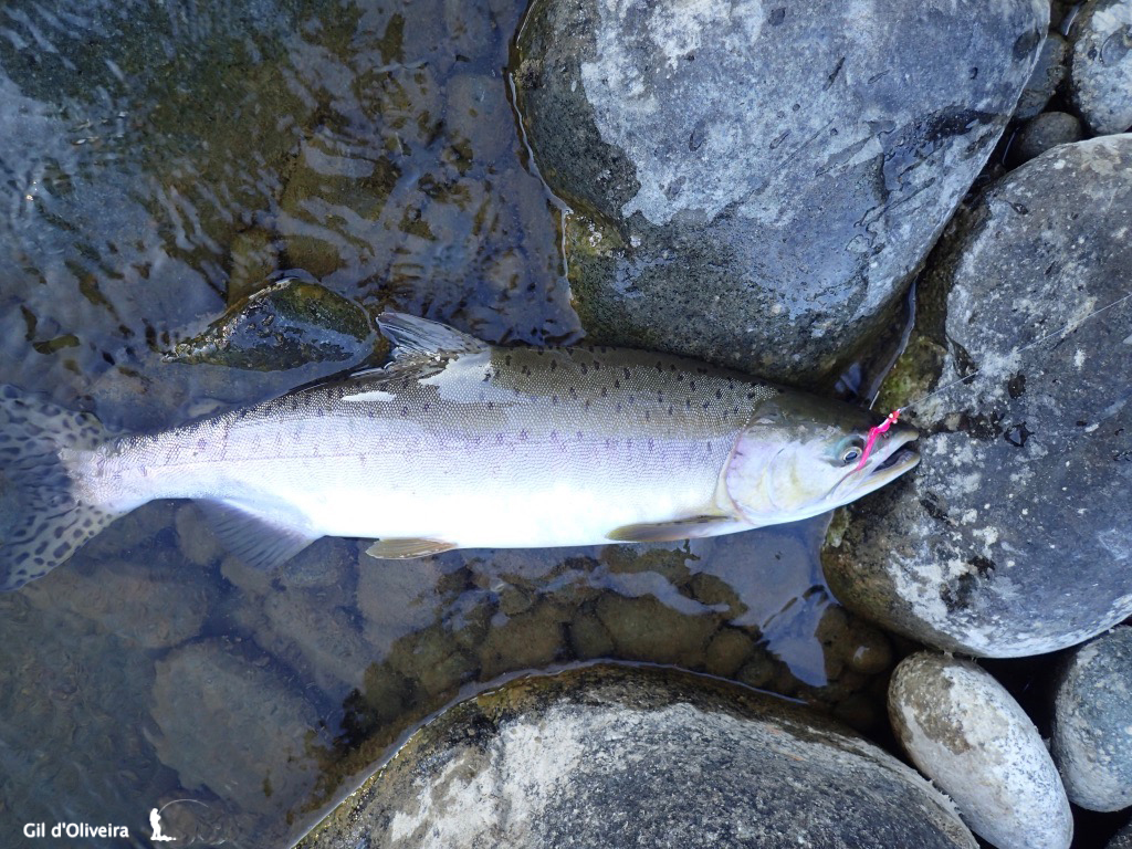 Standing mid-river, it’s a real challenge to fight the salmon and keep your balance on the slippery rocks as you slowly work your way downstream.