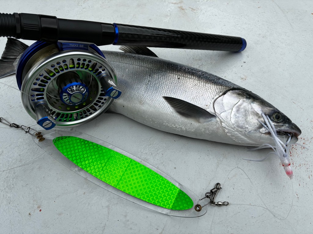 It’s very easy to palm the reel when the salmon is making a strong run. While the large paddle handles increases grip and leverage over the traditional cylindracal handles.