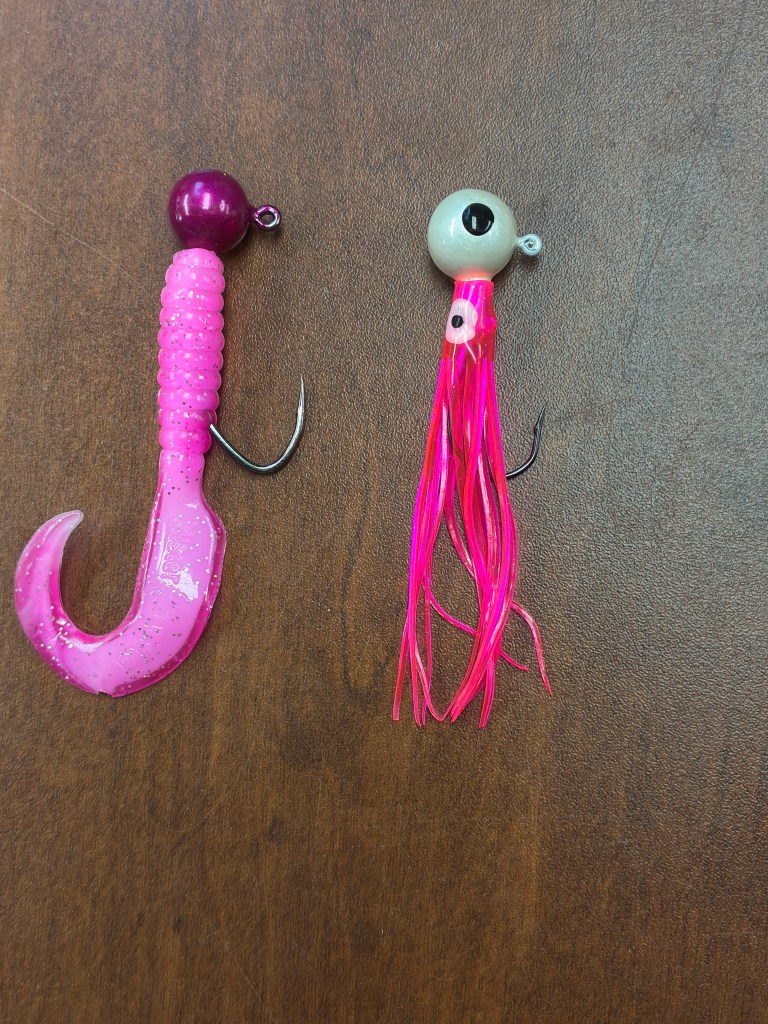 I carry a variety of weighted jigs, ranging from 1/4 ounce, 3/8, and 1/2 ounce. This selection effectively allows the angler to adapt to the changing river flows. The shape of the jig’s weighted head has evolved from round to cone-shaped and now to cylindrical, and I am sure manufacturers will continue to innovate with different designs.