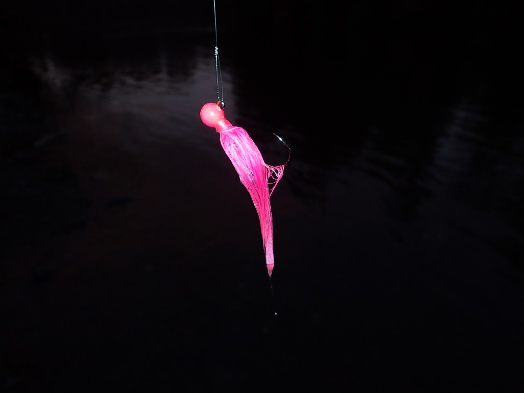 Timing will also vary as the jigs encounter resistance from the river current. For example, when casting slightly downriver, I will do the twitch but delay retrieving the line during the twitch, as often the river current is picking up the slack. It’s a learning process, and during this time, you have to accept that you’ll eventually lose some jigs.